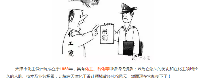 2016-08-01甲方2乙方 因受天津大爆炸案牽連,近日住建部正式公布了對天津市化工設計院的處罰決定(網址:http://www.mohurd.gov.cn/wjfb/201607/t20160715_228167.html):吊銷化工石化醫藥行業設計甲級資質!