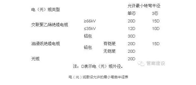 2016-10-11河南區域能源專業委員會 綜合管廊的電(光)纜敷設 一、納入綜合管廊內的電(光)纜,在垂直和水平轉向部位、電(光)纜熱伸縮部位以及蛇行弧部位的彎曲半徑,如表所示: …