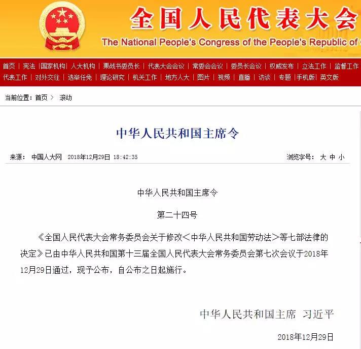 全國人民代表大會常務委員會關于修改《中華人民共和國勞動法》等七部法律的決定(2018年12月29日第十三屆全國人民代表大會常務委員會第七次會議通過)第十三屆全國人民代表大會常務委員會第…