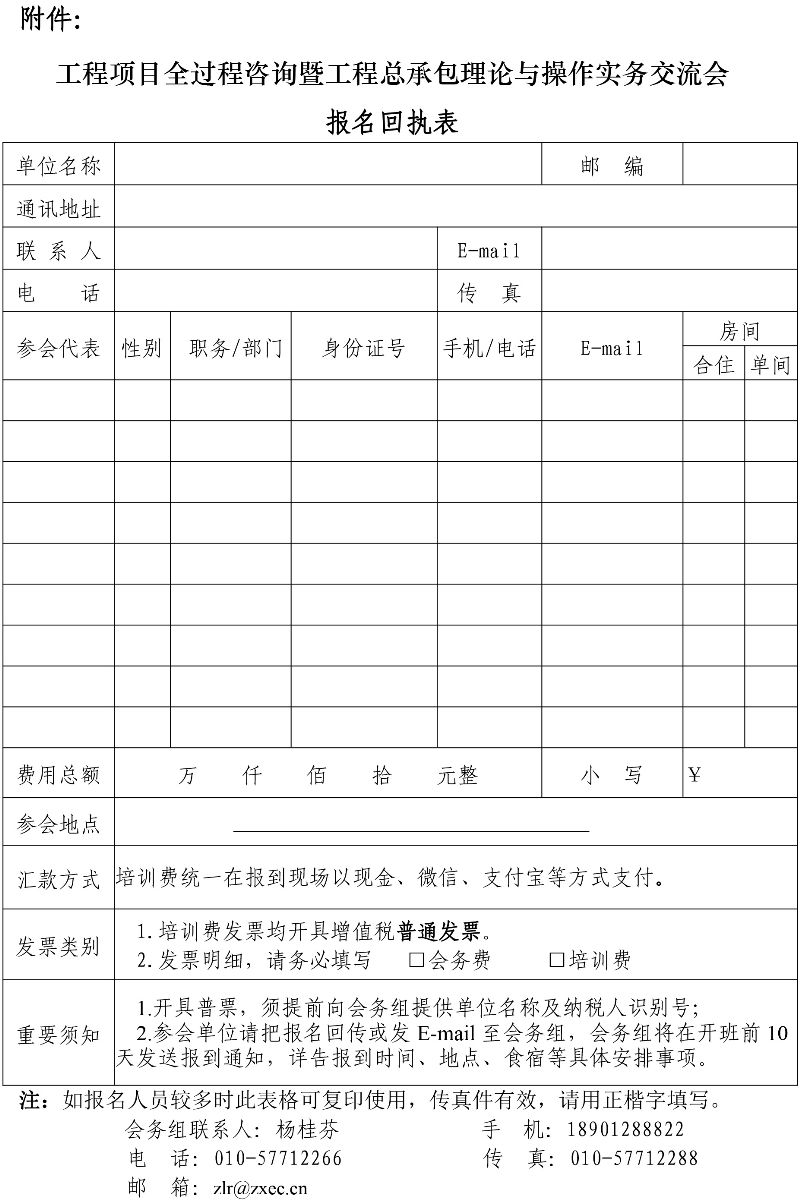 附件:“工程項(xiàng)目全過(guò)程咨詢暨工程總承包理論與操作實(shí)務(wù)交流會(huì)”報(bào)名回執(zhí)