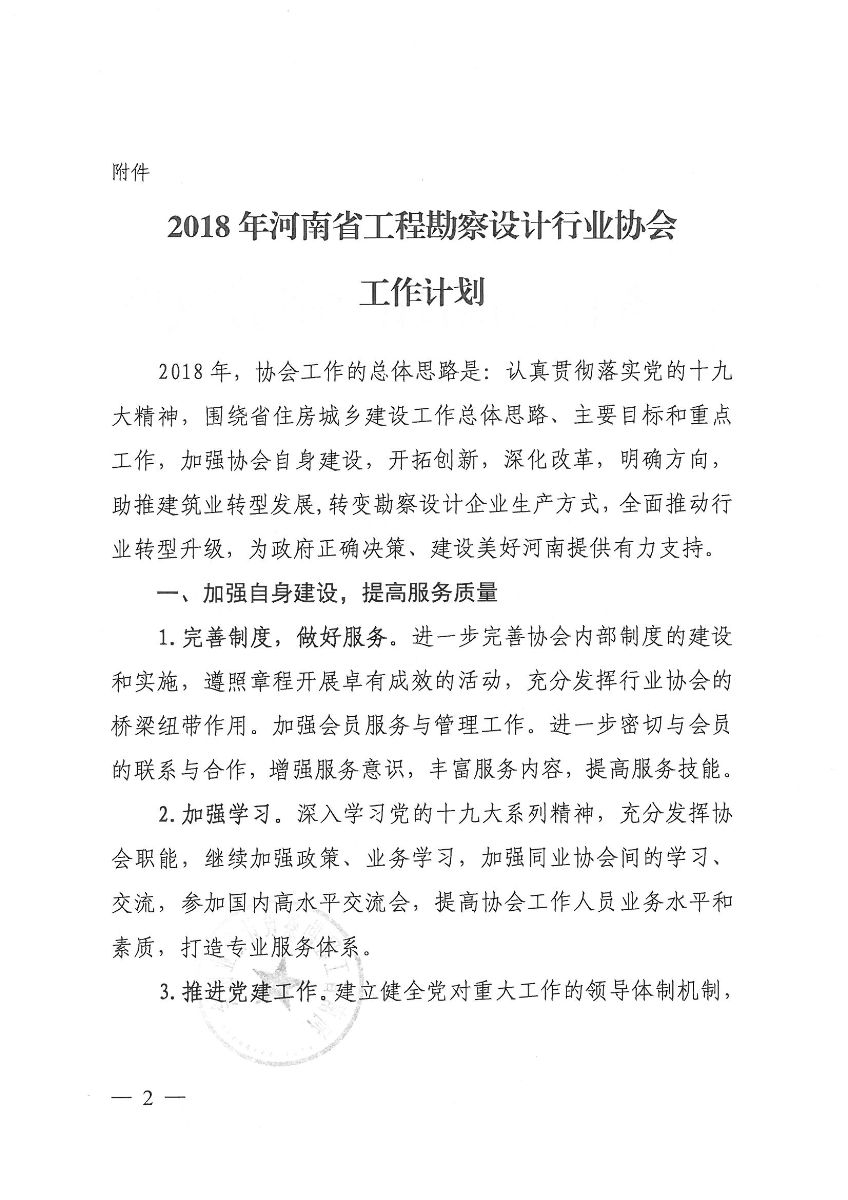 協會關于印發《2018年河南省工程勘察設計行業協會工作計劃》的通知
