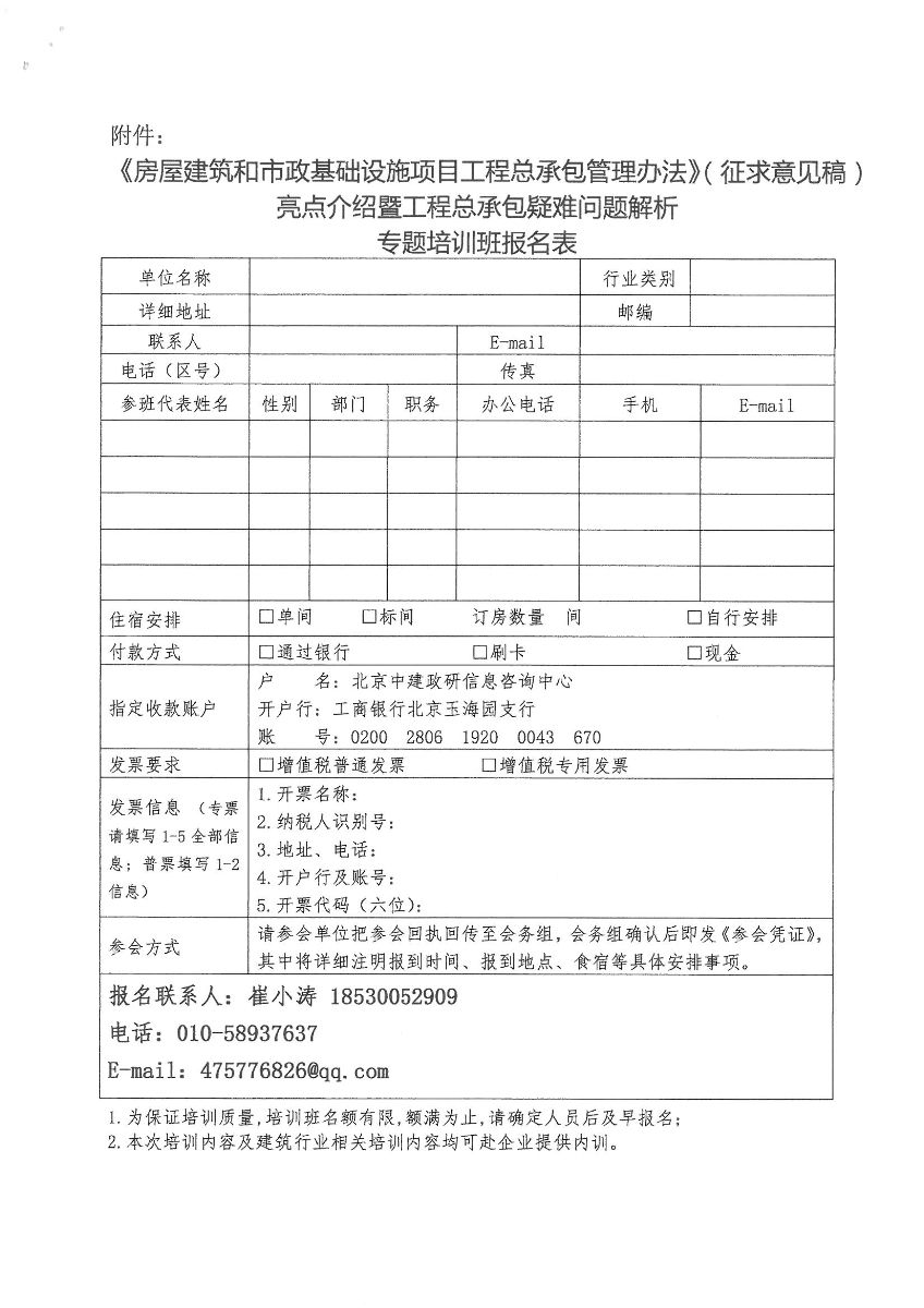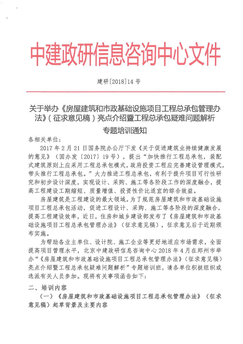 附件1:關于舉辦<房屋建筑和市政基礎項目工程總承包管理辦法>(征求意見稿)亮點介紹暨工程總承包疑難問題解析專題培訓通知