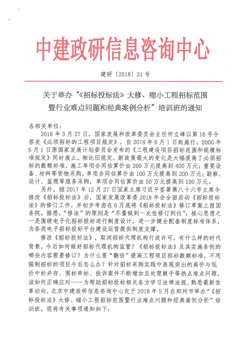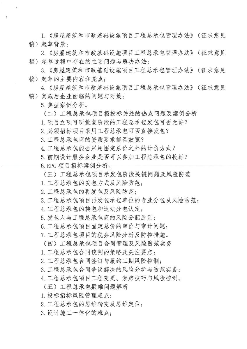 (征求意見稿)亮點介紹暨工程總承包疑難問題解析專題培訓通知》和《關于舉辦“<招標投標法>大修、縮小工程招標范圍暨行業難點問題和經典案例分析”培訓班的通知》的通知"> (征求意見稿)亮點介紹暨工程總承包疑難問題解析專題培訓通知》和《關于舉辦“<招標投標法>大修、縮小工程招標范圍暨行業難點問題和經典案例分析”培訓班的通知》的通知">