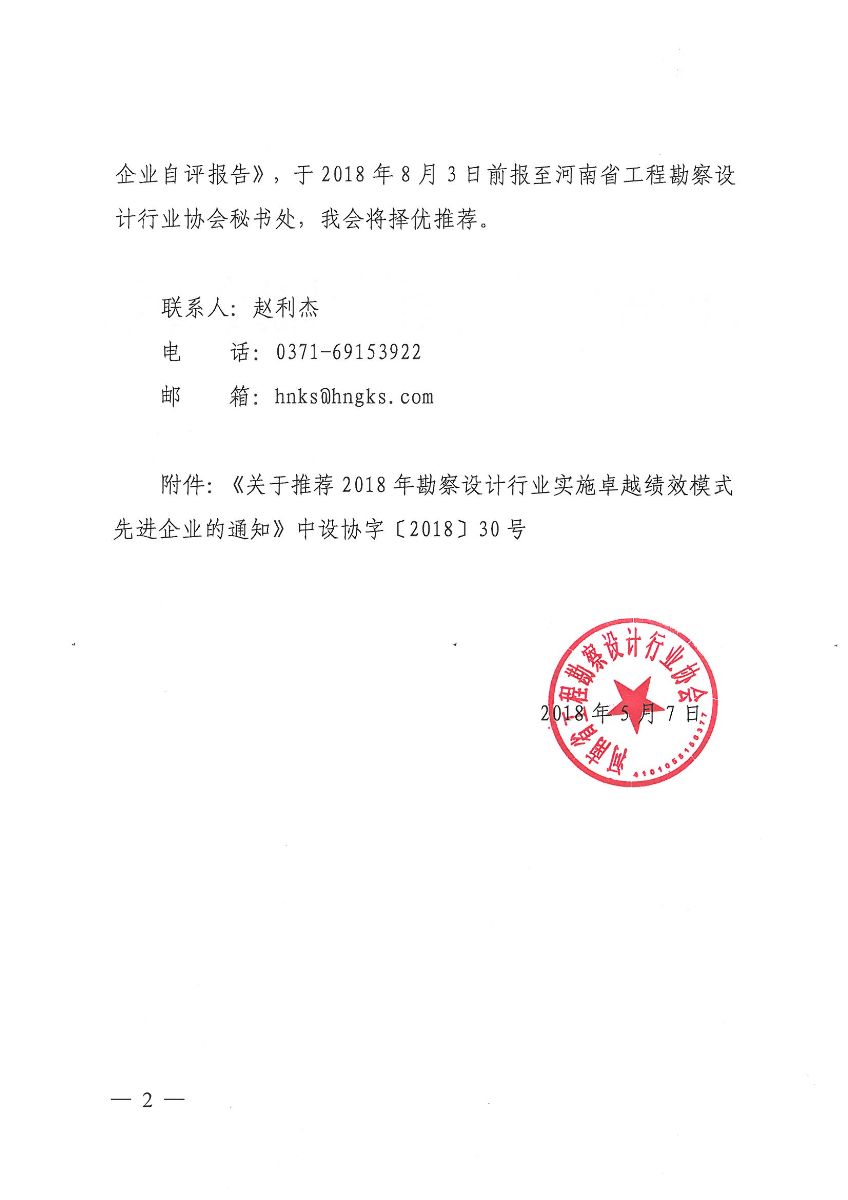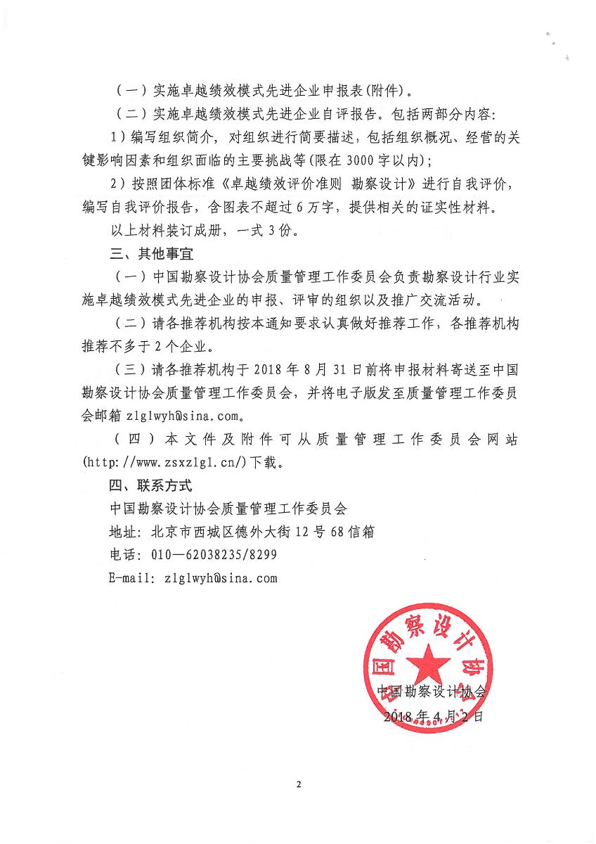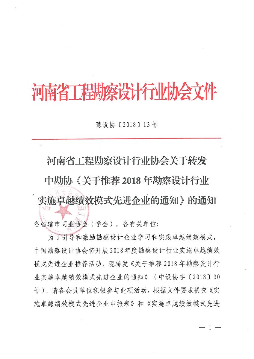 協會關于轉發中勘協《關于推薦2018年勘察設計行業實施卓越績效模式先進企業的通知》的通知