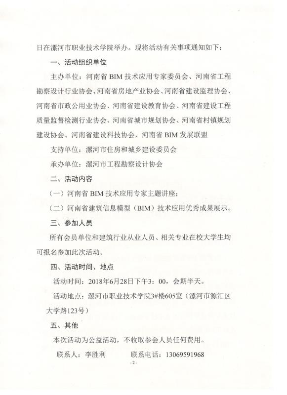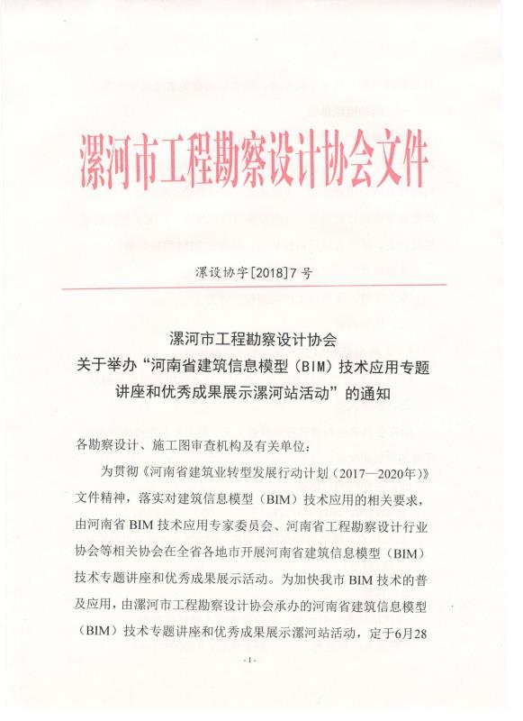 漯河市工程勘察設計協會關于舉辦“河南省建筑信息模型(BIM)技術應用專題講座和優秀成果展示活動”的通知