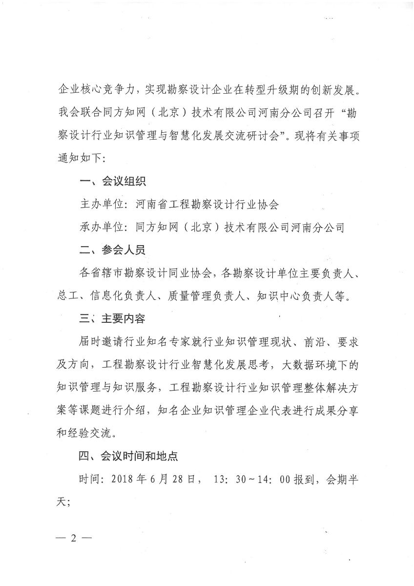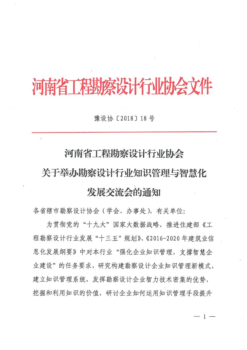 協(xié)會(huì)關(guān)于舉辦勘察設(shè)計(jì)行業(yè)知識(shí)管理與智慧化發(fā)展交流會(huì)的通知