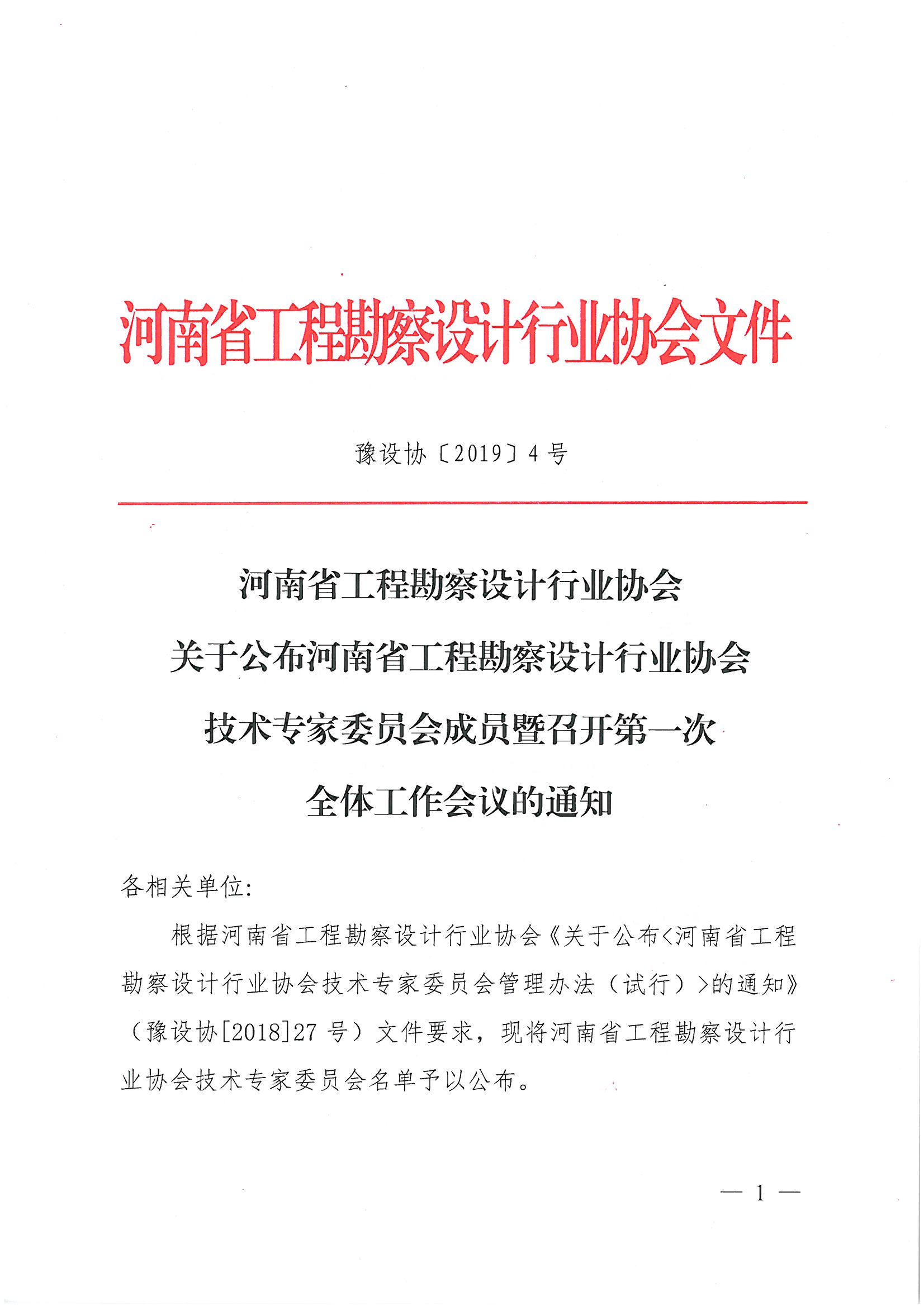 協會關于公布河南省工程勘察設計行業協會技術專家委員會成員暨召開第一次全體工作會議的通知