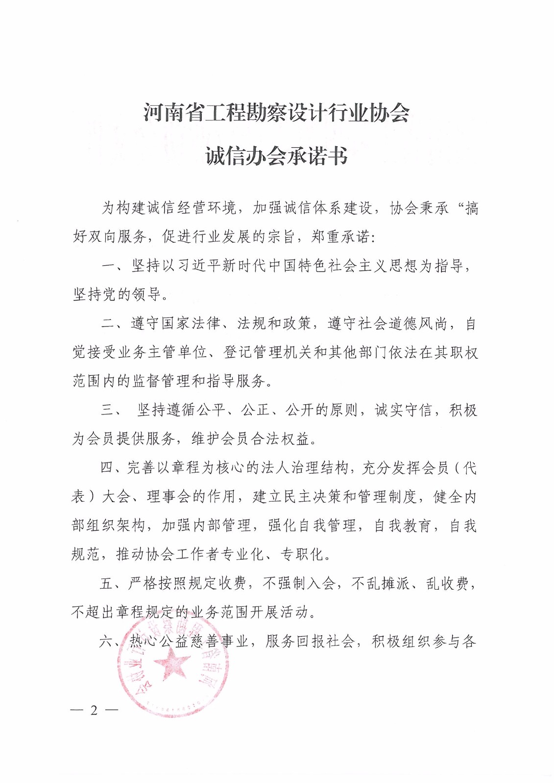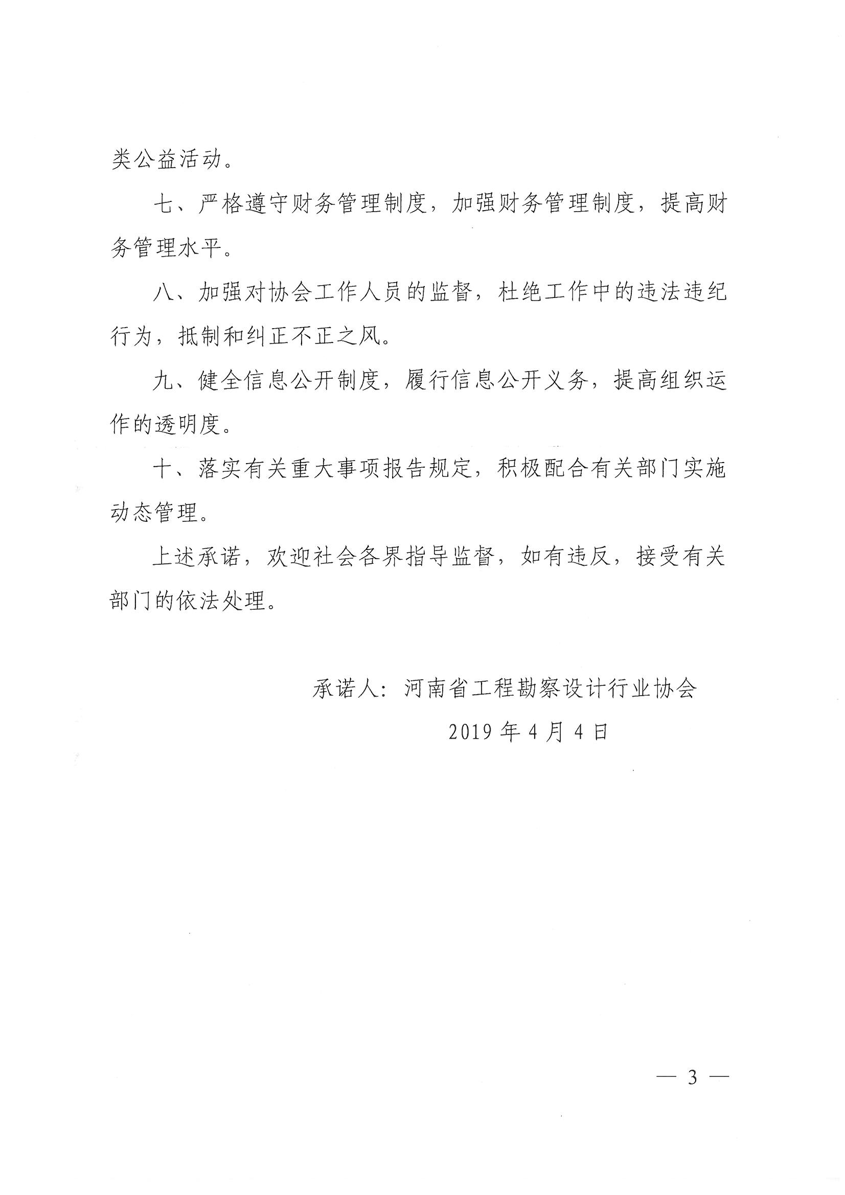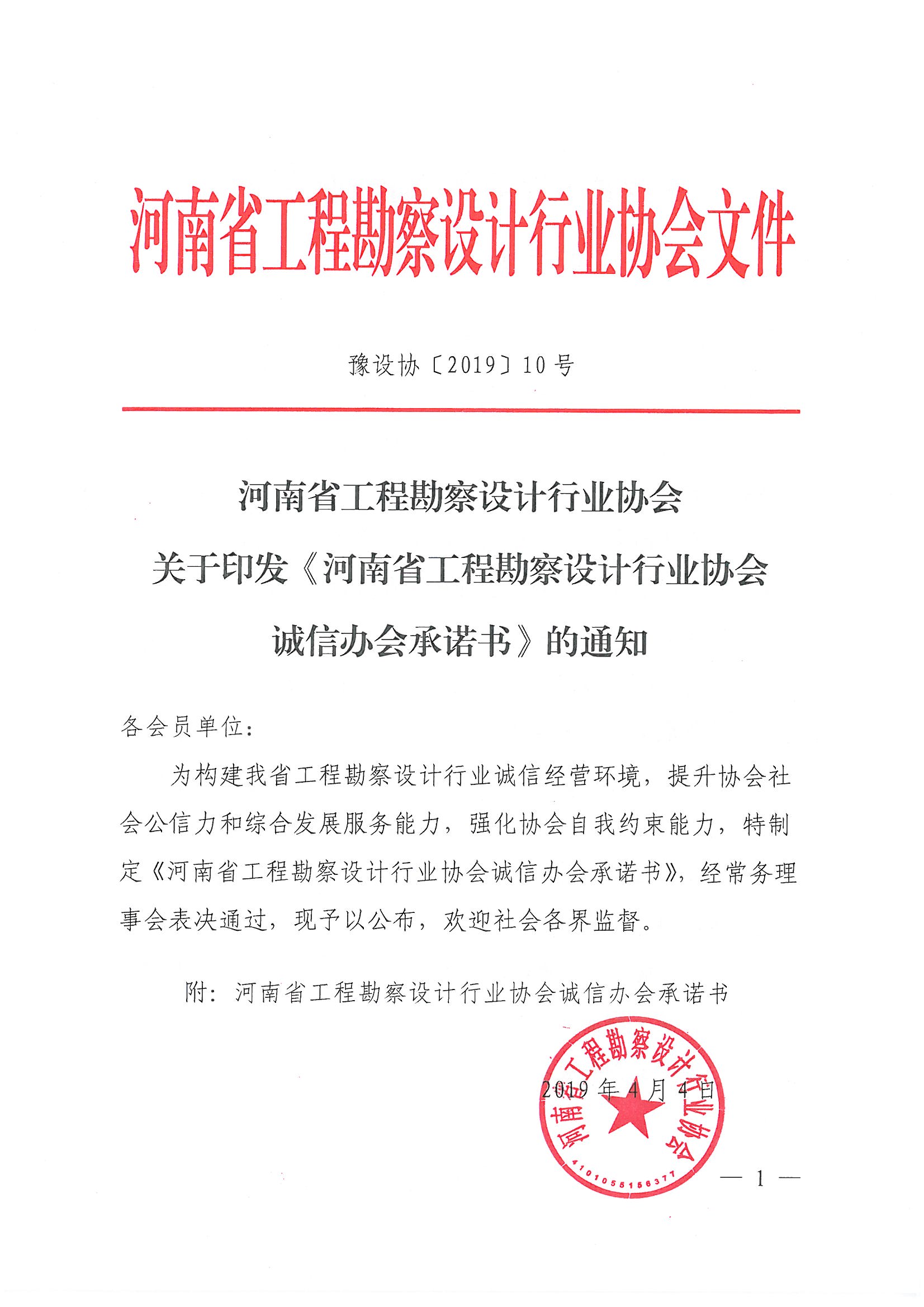 協會關于印發《河南省工程勘察設計行業協會誠信辦會承諾書》的》通知