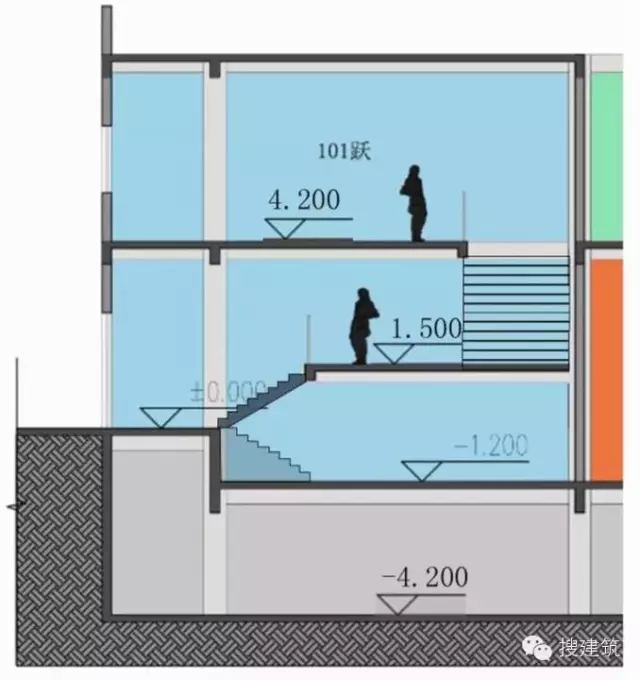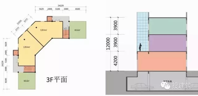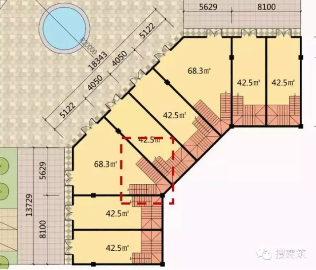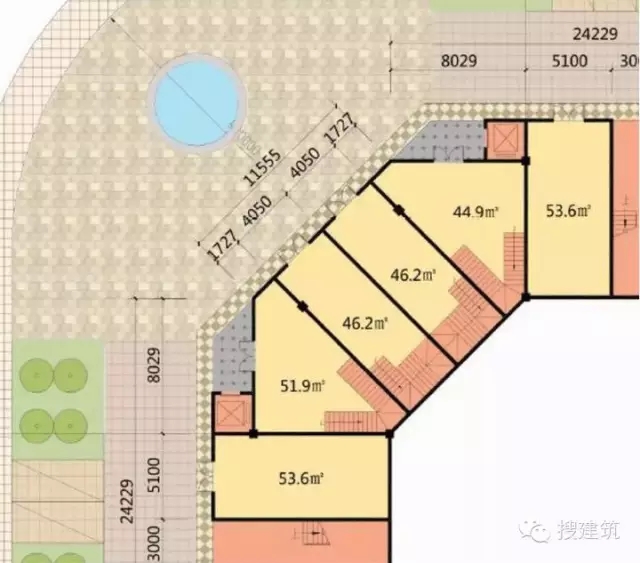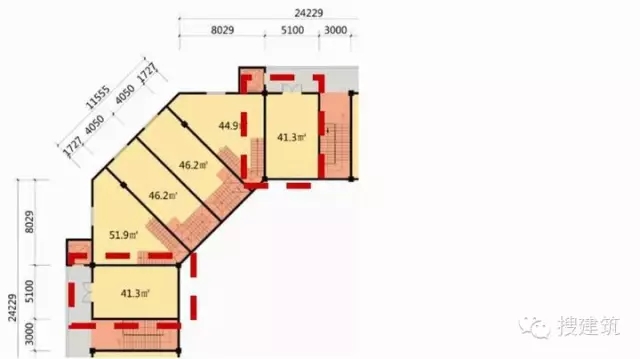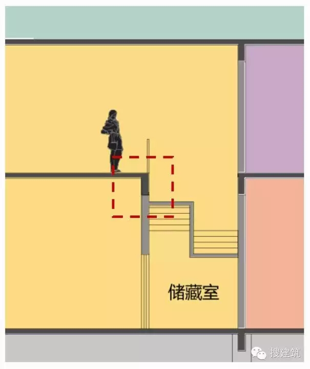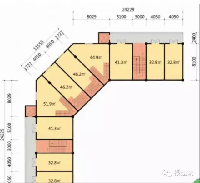 (轉角的三角處留1.2米左右樓梯平臺處理銳角空間)