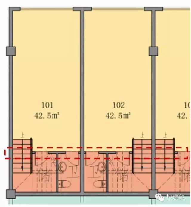 (分層銷售時需預留室內樓梯梁便于業主后期改造,做到可分可合,做到銷售方式的靈活轉換)