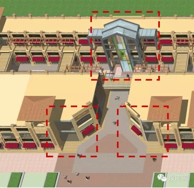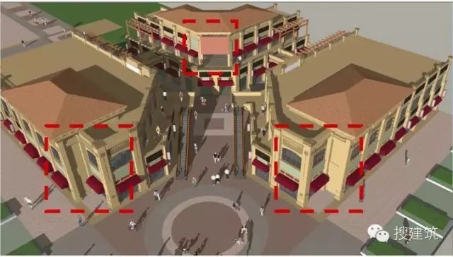 坡屋頂(坡屋頂宜做成假坡屋頂來控制成本,重要節點部位可以做成悶頂或閣樓增加頂層商鋪價值)
