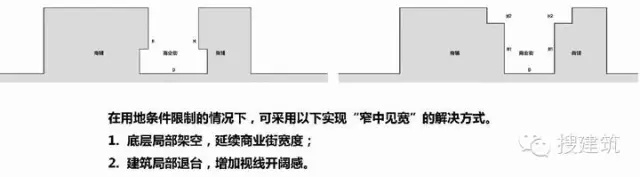 ③ 沿街商業避免斷鋪,保證商鋪連續性(相對于綜合型商業,沿街商業一般無主力店支持,人流引導性較弱,所以盡量避免段鋪,保證商鋪連續性)