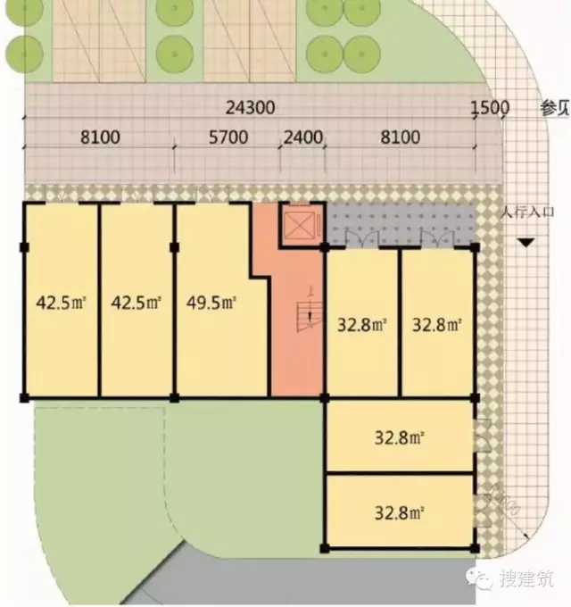 2、疏散樓梯應放在電梯后面或者價值不高處,避免遮擋商鋪沿街面。同時盡量減小疏散樓梯間面積,沿街展示面是商鋪的生命哦。沿街展示面是商鋪的生命哦