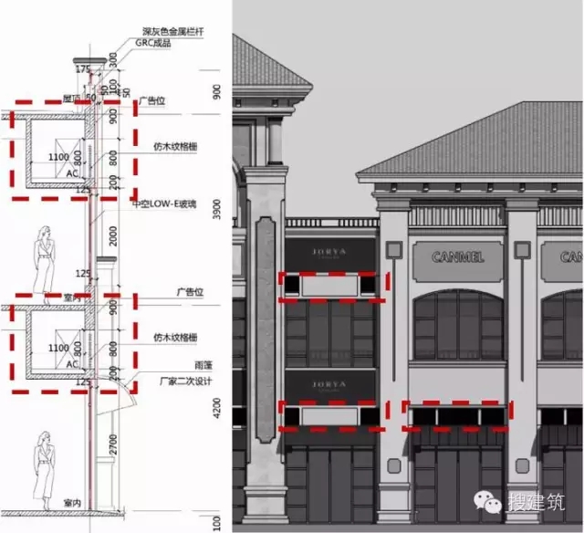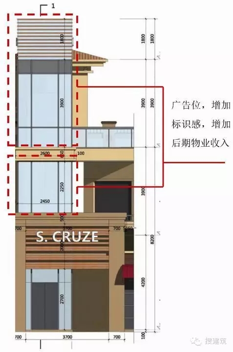 商業建筑立面設計是商業廣告展示實現的關鍵,每個細部設計都是圍繞實現商業廣告展示這個目的(從某種意義上說,商業建筑賣的就是廣告)