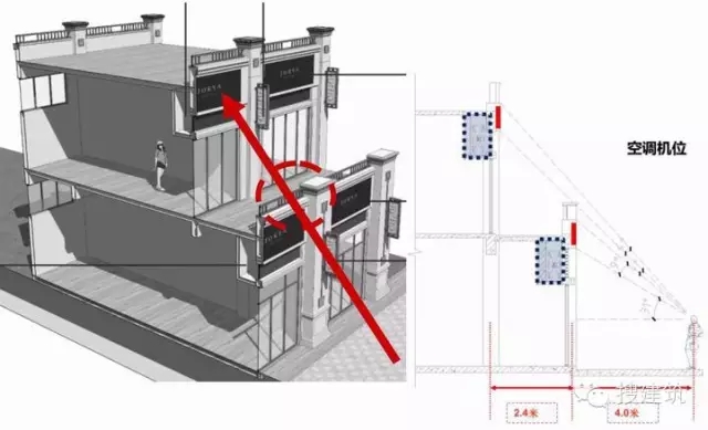 為了廣告位置,空調室外機只能屈就,且空調出風口也不用整個橫檔,多余的也可以做廣告掙錢