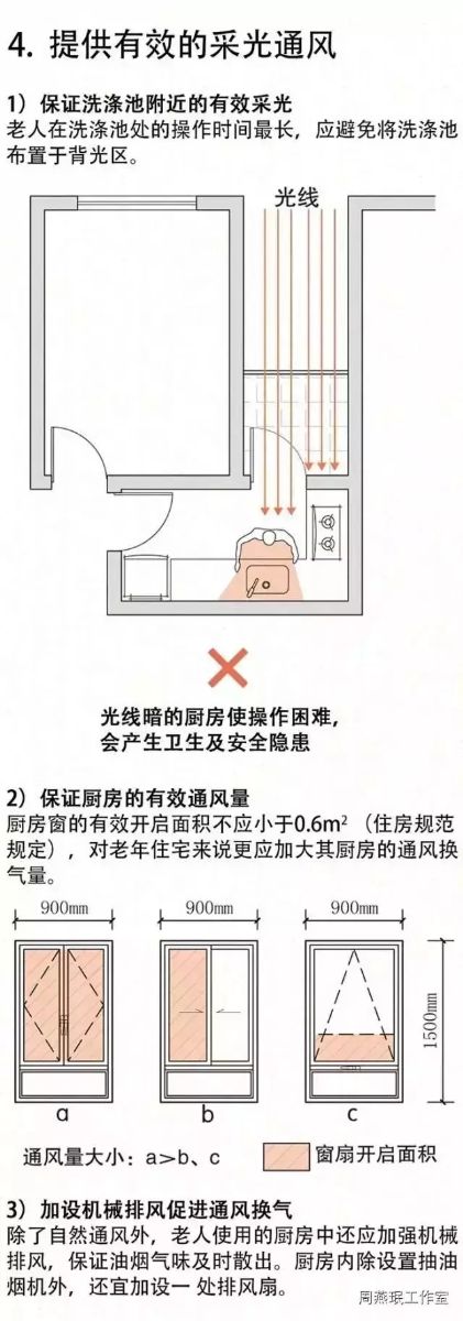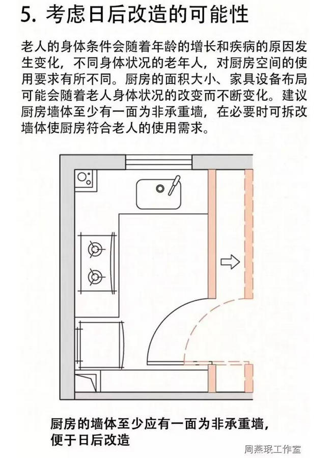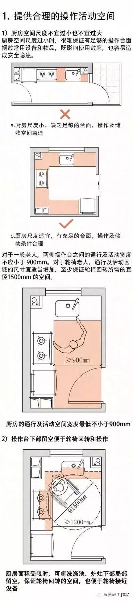 周到細致的廚房設計是保證老人實現自主生活的基礎。老人日常的主要活動很多是圍繞廚房展開的,在廚房中停留的時間也相對較長。老人廚房設計中不可不注意以下五大要點。