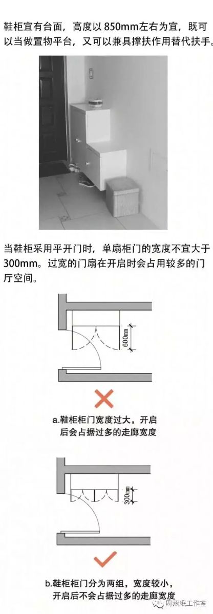 住宅中往往門廳空間很有限,卻要布置諸如鞋柜、鞋凳、衣柜、衣帽架、穿衣鏡等多種家具。如何合理有序地布置家具就成為了門廳設計的重中之重。下面就讓我們來看看門廳中的家具應當怎樣選擇和擺放。