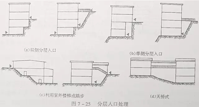 4、建筑物結合地形布置的方法: