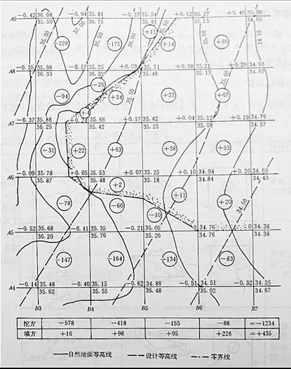 十五、施工高程的確定、標注零界線、土方量的計算: