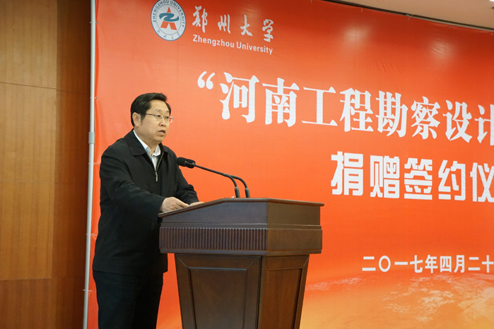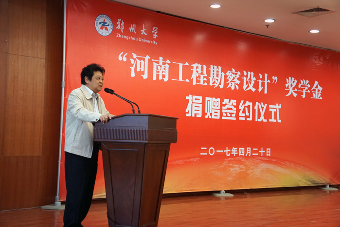 4月20日,“河南工程勘察設計”獎學金簽約儀式在鄭大校園舉行。鄭州大學副校長宋毛平代表鄭州大學致辭,介紹了鄭大的發展歷程和鄭州大學教育發展基金會的現狀,對協會所做工作表示感謝,對捐贈單位支持教育事業、熱心奉獻社會的卓識善舉表示敬意。