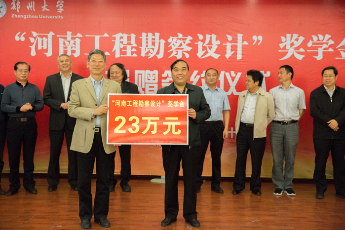 協會企業文化工作委員會主任、煤炭工業鄭州設計研究院黨委書記牛其志代表企業進行捐贈,宋毛平副校長代表鄭州大學接受捐贈。“河南工程勘察設計”獎學金16家捐助企業負責人、鄭州大學教育發展基金會負責人及師生代表共200多人參加簽約儀式。