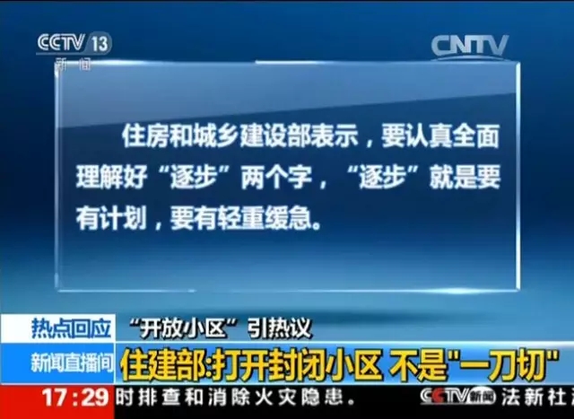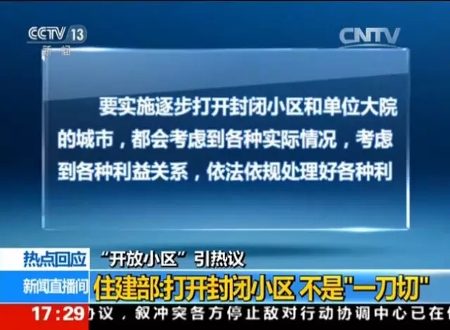 主持人:我們繼續回應大家關注的民生熱點——“開放小區”,這個熱點緣起于近來中央公布的《關于進一步加強城市規劃建設管理工作的若干意見》這份文件,文件規定原則上不再建設封閉的住宅小區,已建成的住宅小區和單位大院也要逐步打開,實現內部道路公共化。可以說,這些內容這兩天引起了全社會的熱議。今天,住房和城鄉建設部專門做出了回應: