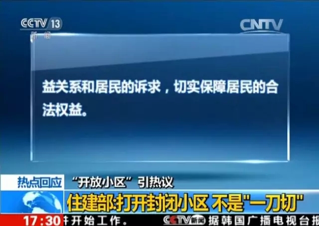 記者:專家表示,小區開放,還涉及到既有小區業主權益的維護、物業管理的升級、治安與配套設施的跟進等問題,因此,需要在制度上與法律上出臺配套政策,才能夠更好地去落實。而《若干意見》中“原則上”、“逐步”等字眼,也體現了政策落地必將是循序漸進的過程。