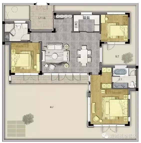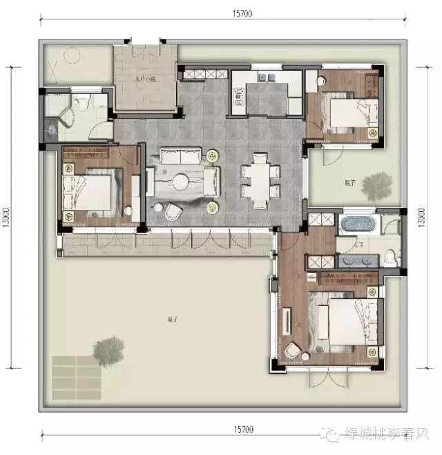 •圍合式庭院布局,推窗見景,敞闊院落可自由發揮業主喜好;