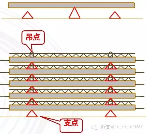 每組豎向最多碼放5塊;支點為兩個,并不吊點同位;每塊板墊四個支點;6個吊點的也墊4個支點;