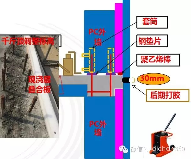 將原有墊片標高控制改進為預埋套筒及螺栓方法控制墻體標高。