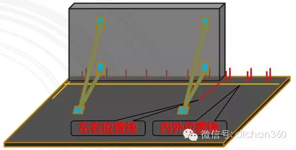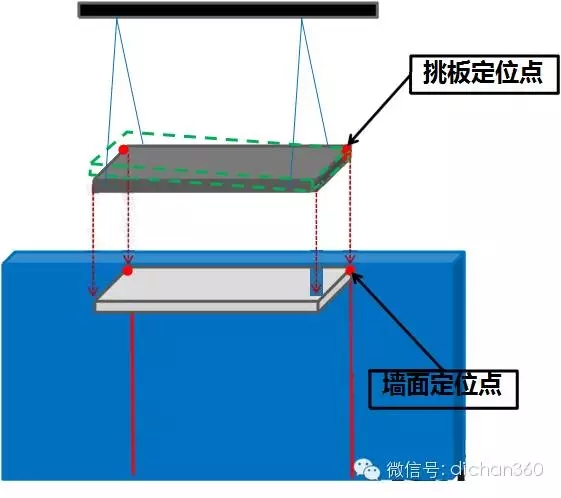 陽臺板、懸挑板定位,挑板定位采用四點、一平、一尺法,即: