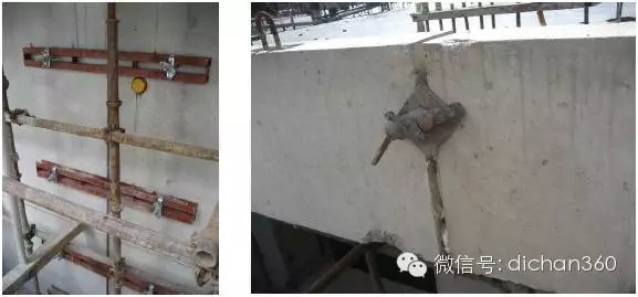 為解決節點處模板不構件剛性結合漏漿問題,采用構件留30㎜寬、8㎜深的企口,模板安裝防漏條。