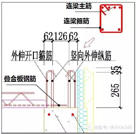 1、X、Y、Z三方向鋼筋交叉,包括疊合板外伸鋼筋、墻體預留主筋、墻體開口箍筋、連梁箍筋、連梁主筋。