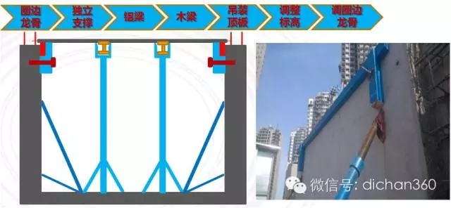 支點放置磕碰外頁板;支點木方高度考慮外頁板高度;