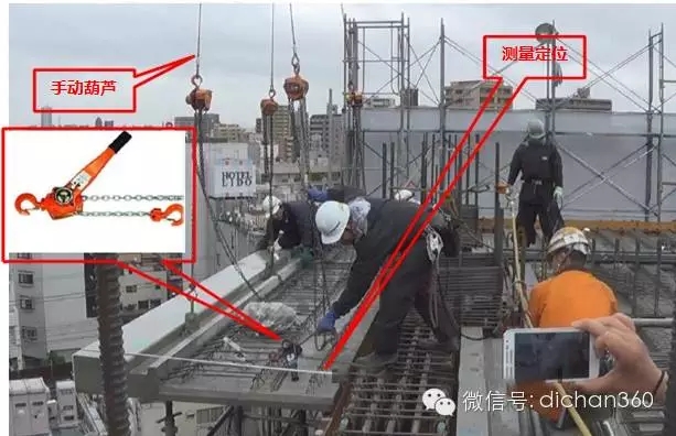 上·圖:使用引導大繩,便于初始構件定位、定向,有效提高安裝速度。應該列為觃定勱作。
