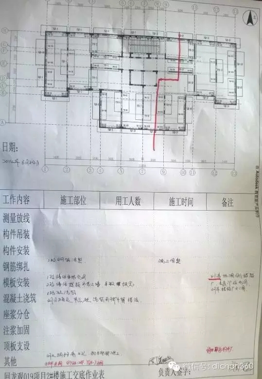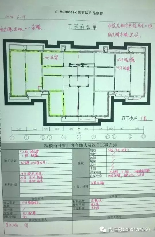 對今日發生的施工工序部位、用工人數、施工時間、施工中遇到的問題進行確認和分析。