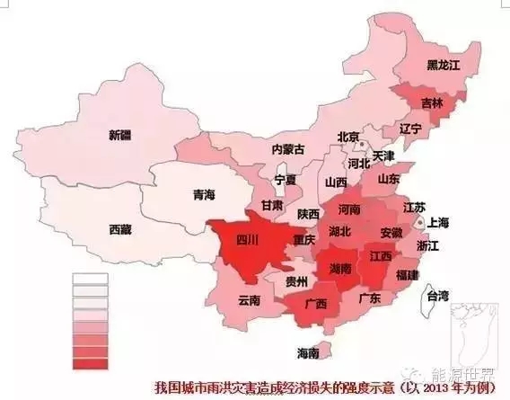 經估算,2013年,7個省(區)份洪澇直接經濟損失超過當地GDP的1%,包括海南(2.05%)、江西(1.66%)、廣西(1.38%)、吉林(1.30%)、甘肅(1.17%)、四川(1.12%)和湖南(1.08%),而安徽接近1%(0.91%)。海綿城市行業可認為是傳統城市市政排水行業的子領域,行業產能和規模占城市排水行業總量的比例微乎其微。有限的產能主要集中在北京、上海、廣東和山東等地,其中東北、華中和西部(包括西南)嚴重空缺。我國城市雨洪災害空間分布極為不均衡,主要集中在華東、華中、華南和中西部地區,其中華北和東北同樣存在較高的城市雨洪風險。將產能和洪澇分布對比可見,以江西、湖北為代表的中部地區供需矛盾嚴重不平衡。