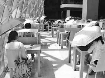 深圳圖書(shū)館新館由日本建筑師磯崎新主持設(shè)計(jì),其東面的水幕和三維玻璃幕墻曲面設(shè)計(jì)如同“豎琴”,雖然造型獨(dú)特,但在炎炎夏日卻給讀者帶來(lái)了較為強(qiáng)烈刺眼的日曬光照,出現(xiàn)了讀者撐傘讀書(shū)的窘?jīng)r,既不人性化又浪費(fèi)資源。