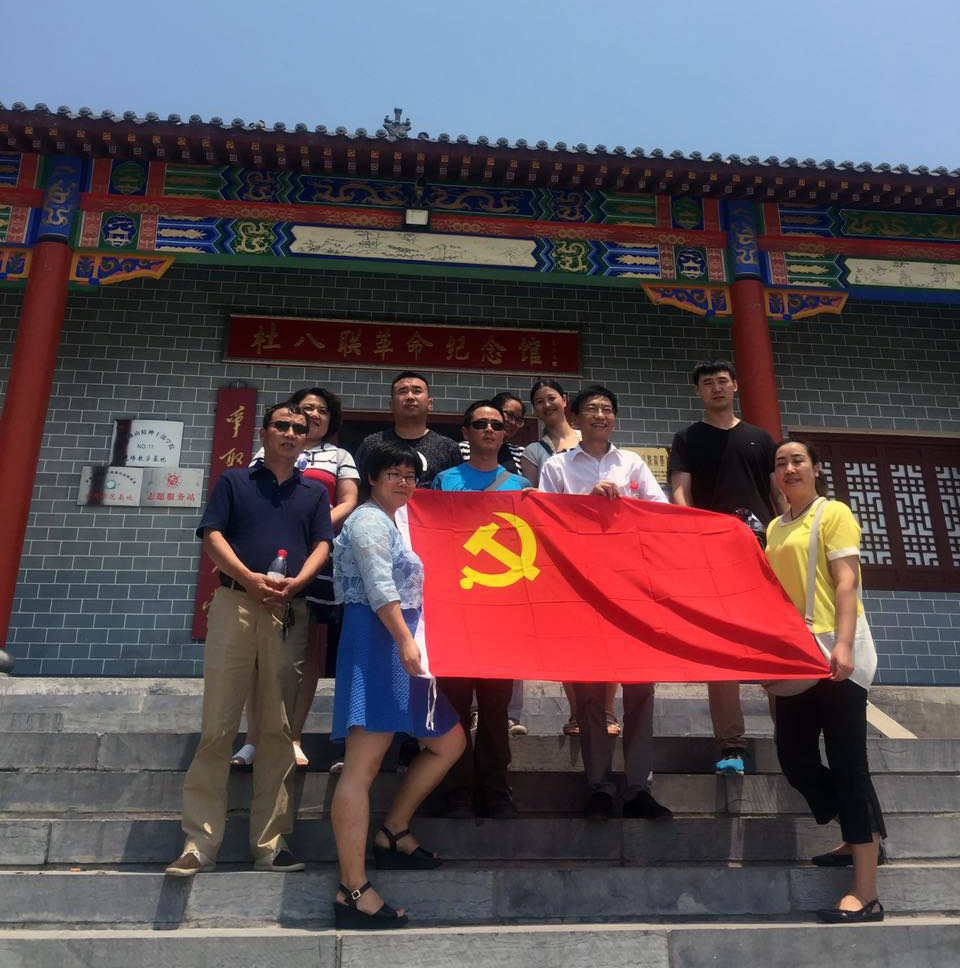 黨員和優秀職工在杜八聯革命紀念館前合影