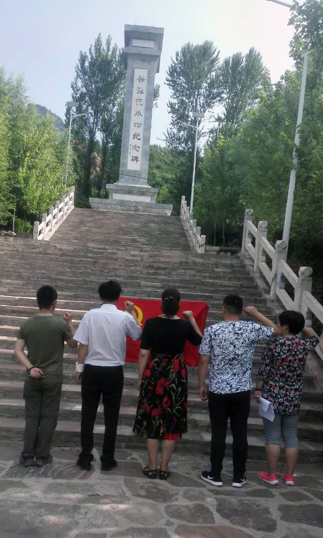 隨后黨員和優秀職工一行趕赴陽城縣橫河鎮晉豫邊抗日紀念碑前,面對鮮紅的黨旗和紀念碑,鏗鏘有力地宣讀了入黨誓詞并合影留念。在晉豫邊抗日紀念館,全體人員仔細聆聽講解,駐足觀看圖片,感受到了革命前輩在索泉嶺建立發展黨組織的艱難曲折,黨帶領山區人民堅持抗日救亡的崇高信念。