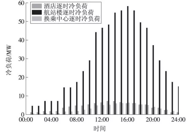 國內某機場規劃建設1 座天然氣分布式能源站,主要滿足機場近期的主要冷、熱負荷及部分電力負荷需求。該機場定位為具有一定國際競爭力的大型樞紐機場,總建筑面積為航站樓56 萬m2、機場酒店10 萬m2、機場換乘中心8 萬m2,共74 萬m2。本文結合該項目設計案例,從負荷分析、設備選型及運行經濟性等角度對機場采用分布式能源系統的設計原則及方案進行初步探索。