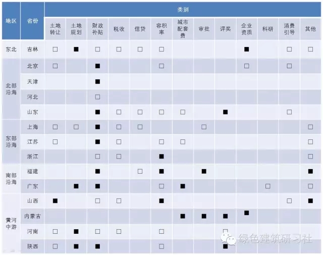 不同省份將財政補貼政策用于激勵綠色建筑