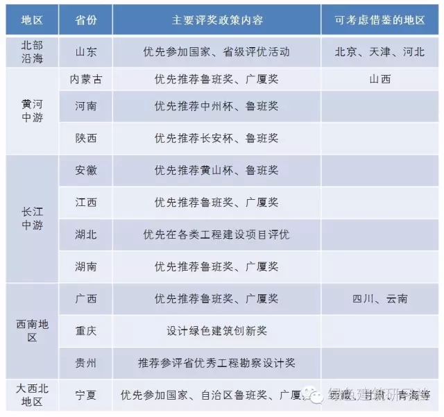 不同省份將評獎作為激勵綠色建筑的重要依據