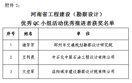 2. 河南省工程建設(勘察設計)優(yōu)秀QC小組活動優(yōu)秀推進者獲獎名單