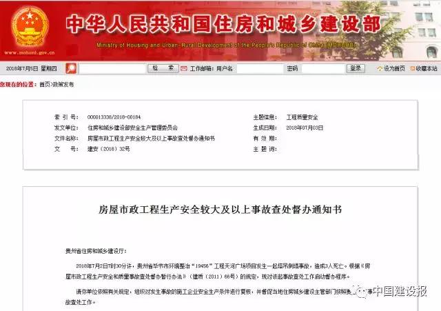 7月3日,住建部連發兩份房屋市政工程生產安全較大及以上事故查處督辦通知書,分別對天津市寶坻區發生一起觸電事故、貴州省畢節市發生一起塔吊倒塌事故查處工作啟動督辦程序。