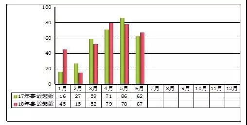 圖5 2018年1-6月較大及以上事故起數與2017年同期對比