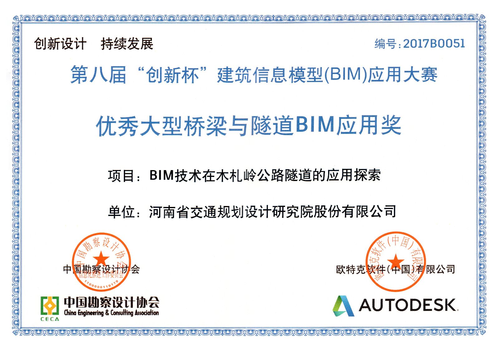 在第八屆“創新杯”建筑信息模型(BIM)應用大賽中,河南省交通規劃設計研究院股份有限公司申報項目《BIM技術在木札嶺公路隧道的應用探索》獲得優秀大型橋梁與隧道BIM應用獎,我協會對獲獎單位表示誠摯的祝賀。