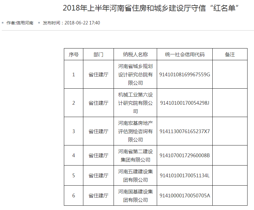 6月22日,河南省政府新聞辦舉行新聞發布會,會上省委宣傳部、省文明辦、省發改委等17家單位聯合發布了2018年上半年河南省誠信建設“紅黑榜”。河南二建集團分別進入省住建廳、省人力資源和社會保障廳公布的守信“紅名單”。