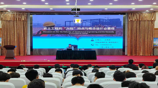 華北水利水電大學(xué)地球科學(xué)與工程學(xué)院于2021年5月13日下午2:30在第一學(xué)術(shù)報告廳舉行“不忘來路-華水學(xué)子講壇之行業(yè)大師進(jìn)課堂”主題講座,特邀我會理事王榮彥主講。講座由教學(xué)副院長王江峰主持,2018、2019、2020級共420名學(xué)生參加本次講座。