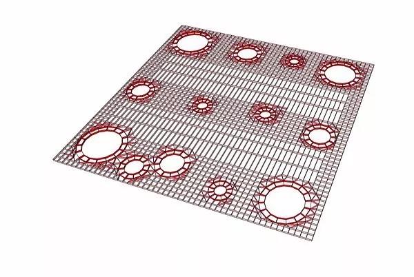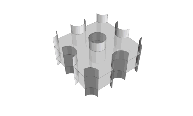 第一步,畫好一個單元格,并在其中均勻的分布柱網,柱子變為管狀,加上樓板,便成了精簡版的仙臺媒體中心。